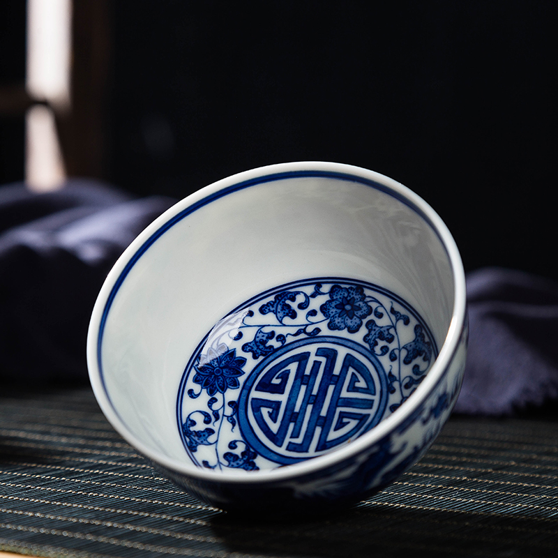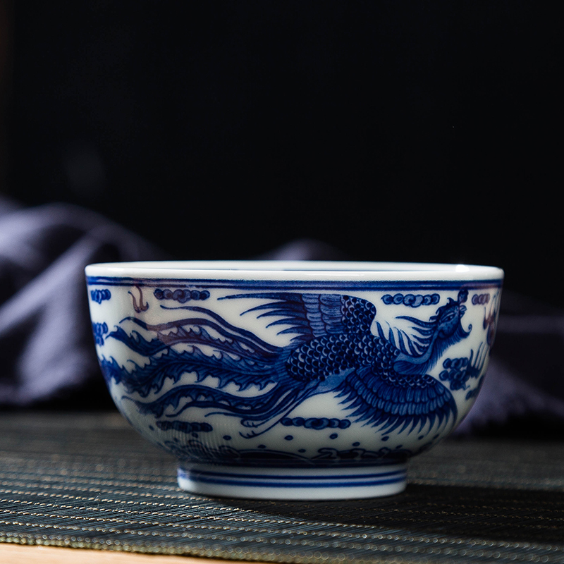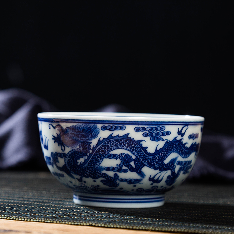 Jingdezhen Ceramic Master's Cup reworked hand painted Longfeng in Xiangqing Qingkangfu tea with single cup of tea drinking cup Tea Bowl