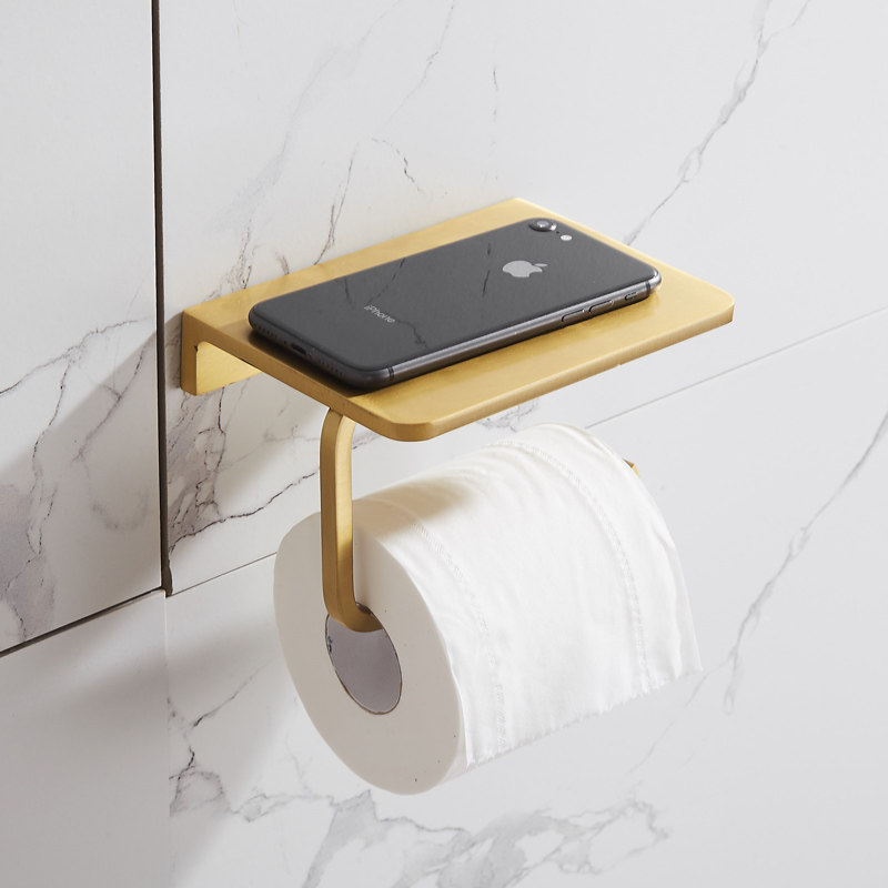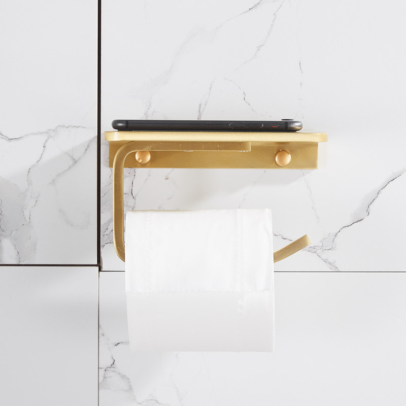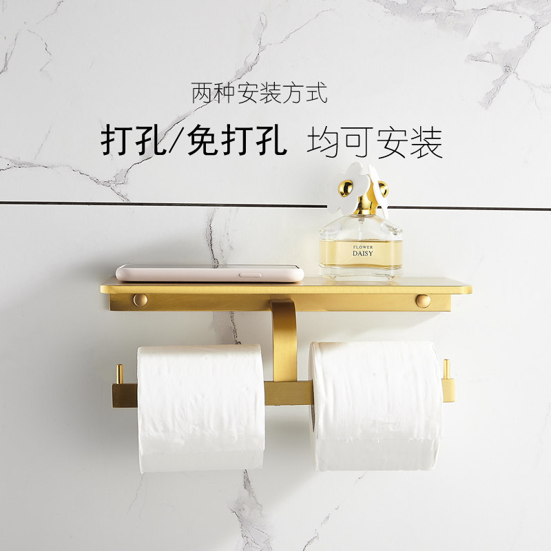 Nordic simple light luxury punch-free space aluminum wire drawing gold paper towel holder wall-mounted bathroom powder room roll toilet paper holder gold