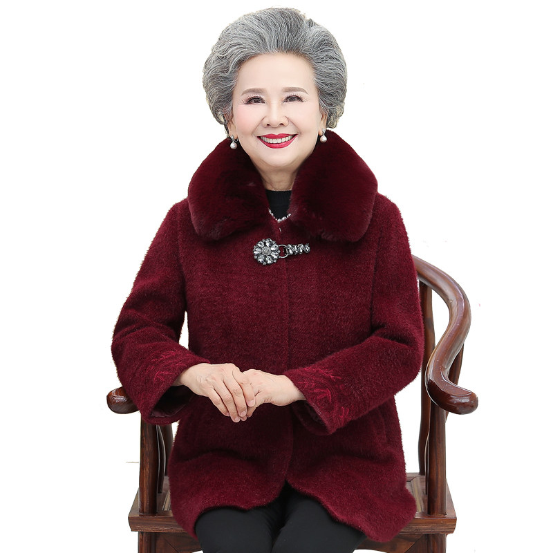 Mid-aged-aged autumn and winter clothing 60-year-old Grandma Snow ferret jacket 70 Mom the new Grand Coat Broads Clothes