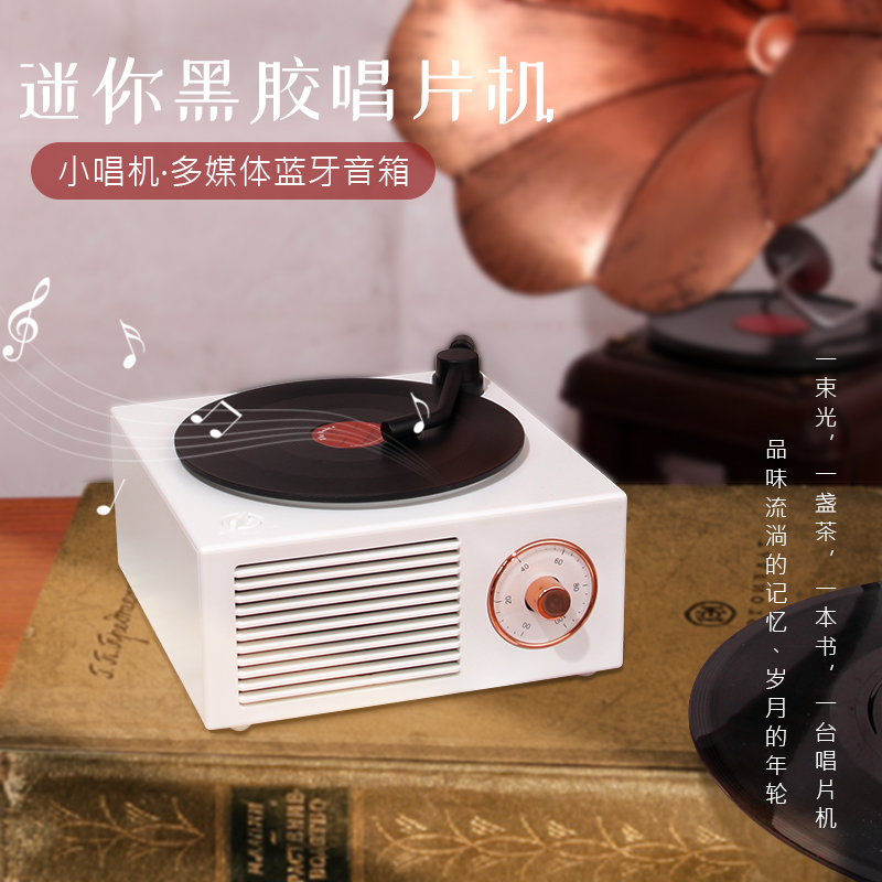 Qiyue vinyl retro record player Bluetooth wireless speaker mini home stereo portable small steel cannon computer card big volume Bass portable outdoor mini tremble giving gifts