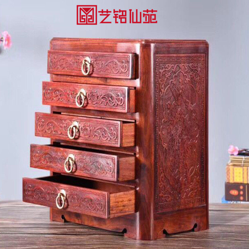 Zambia Blood Sandalwood Five Fighting Cabinet Drawer Pu-erh Tea Leaf Containing Box Tea Cake Cabinet Intake Cabinet Mortise And Tenon Structure Pendulum