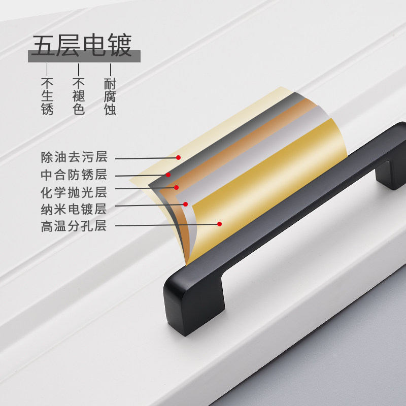 Overall cabinet wardrobe door handle black modern minimalist light luxury handle drawer cabinet door European and American furniture hardware handle