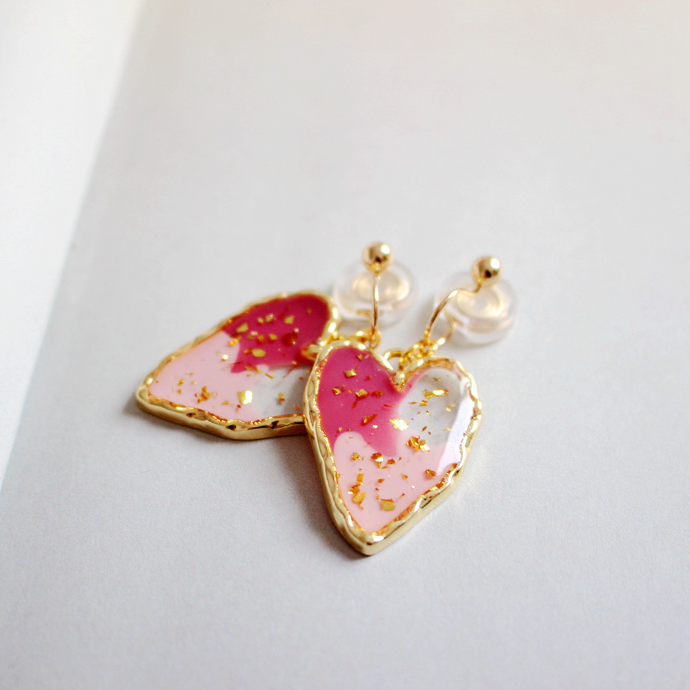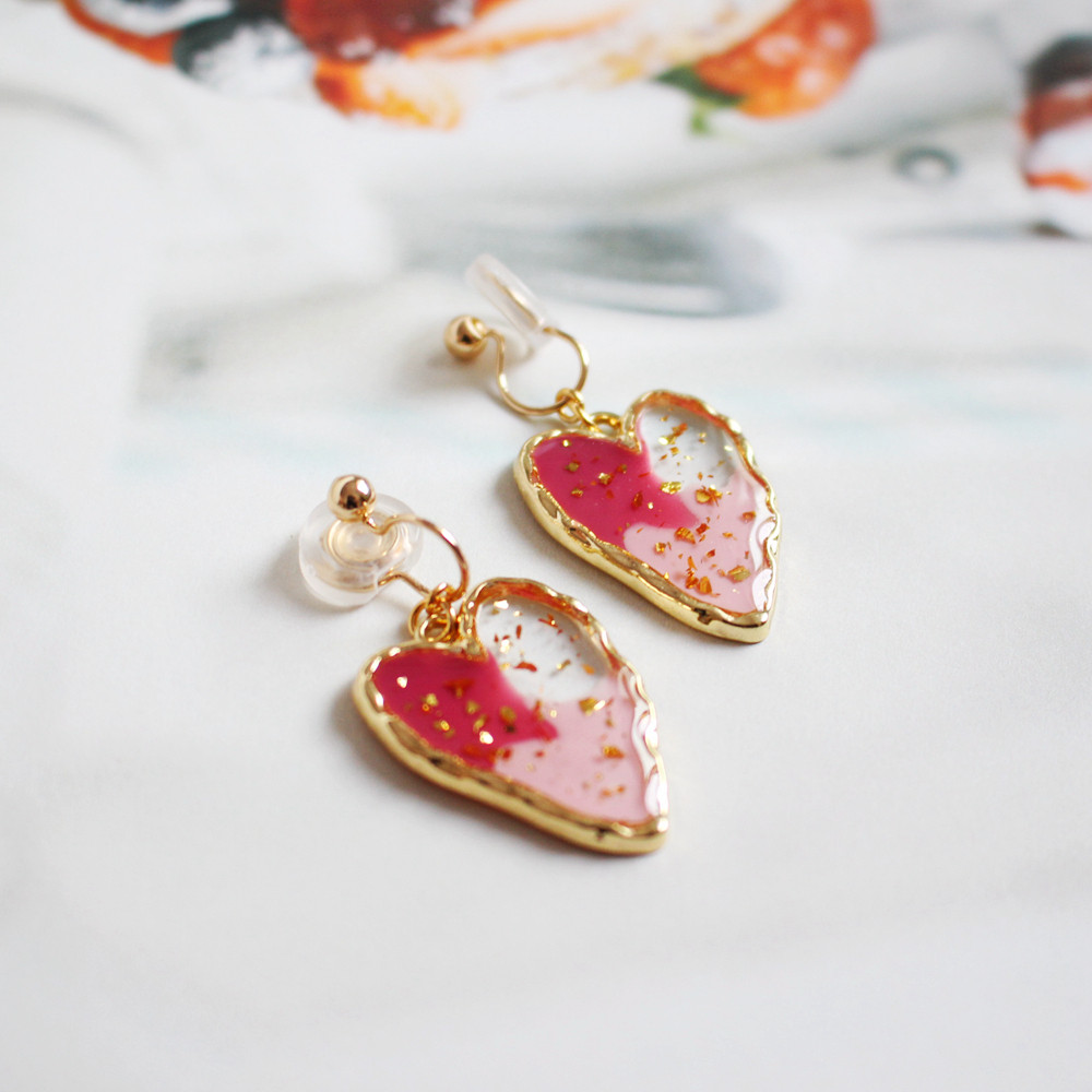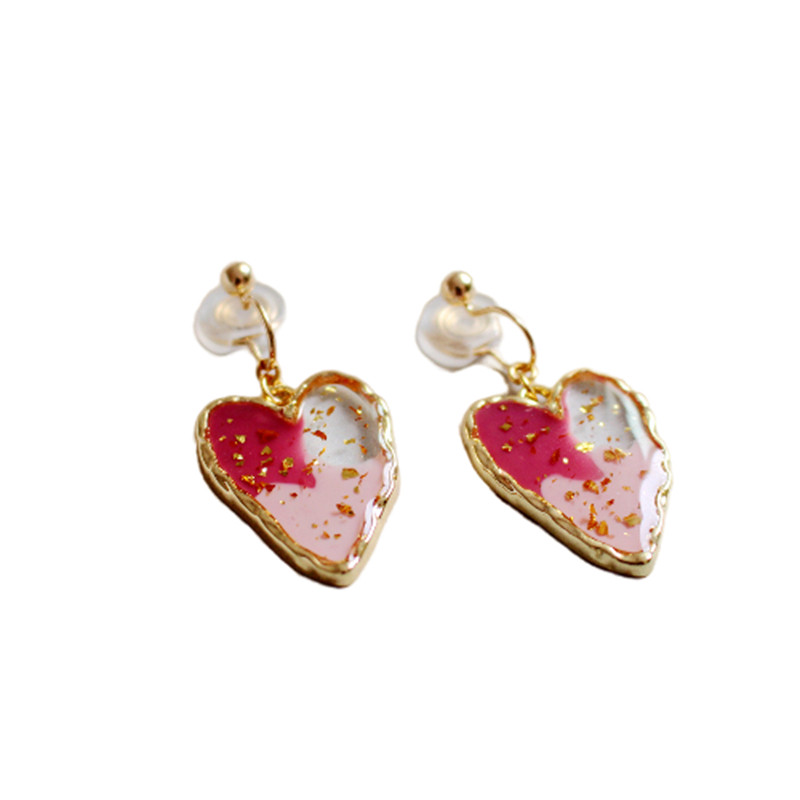 New handmade Korean style painless silicone mosquito coil ear clip invisible ear hole love-shaped contrast earrings earrings