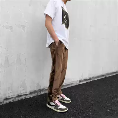 ITSCLIMAX side stripe stitching contrast velvet trousers Casual pants foot zipper straight pants tide brand
