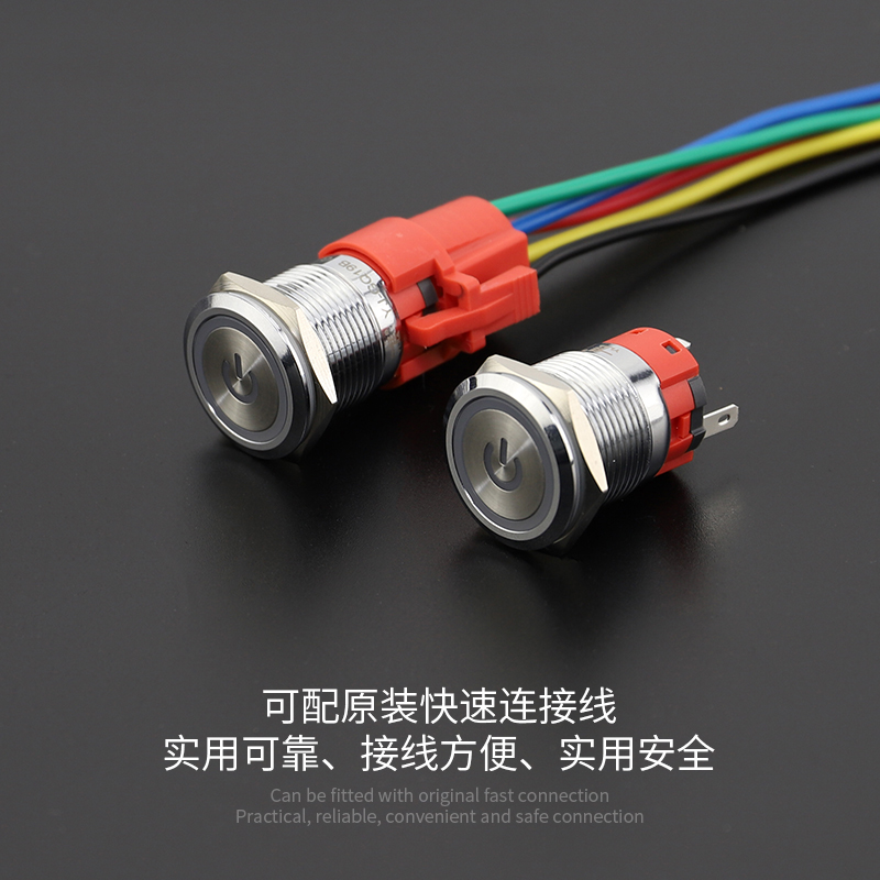Metal button stainless steel switch GQ19B-11EZP Yijia power mark self-repeating lock flat head with lamp button