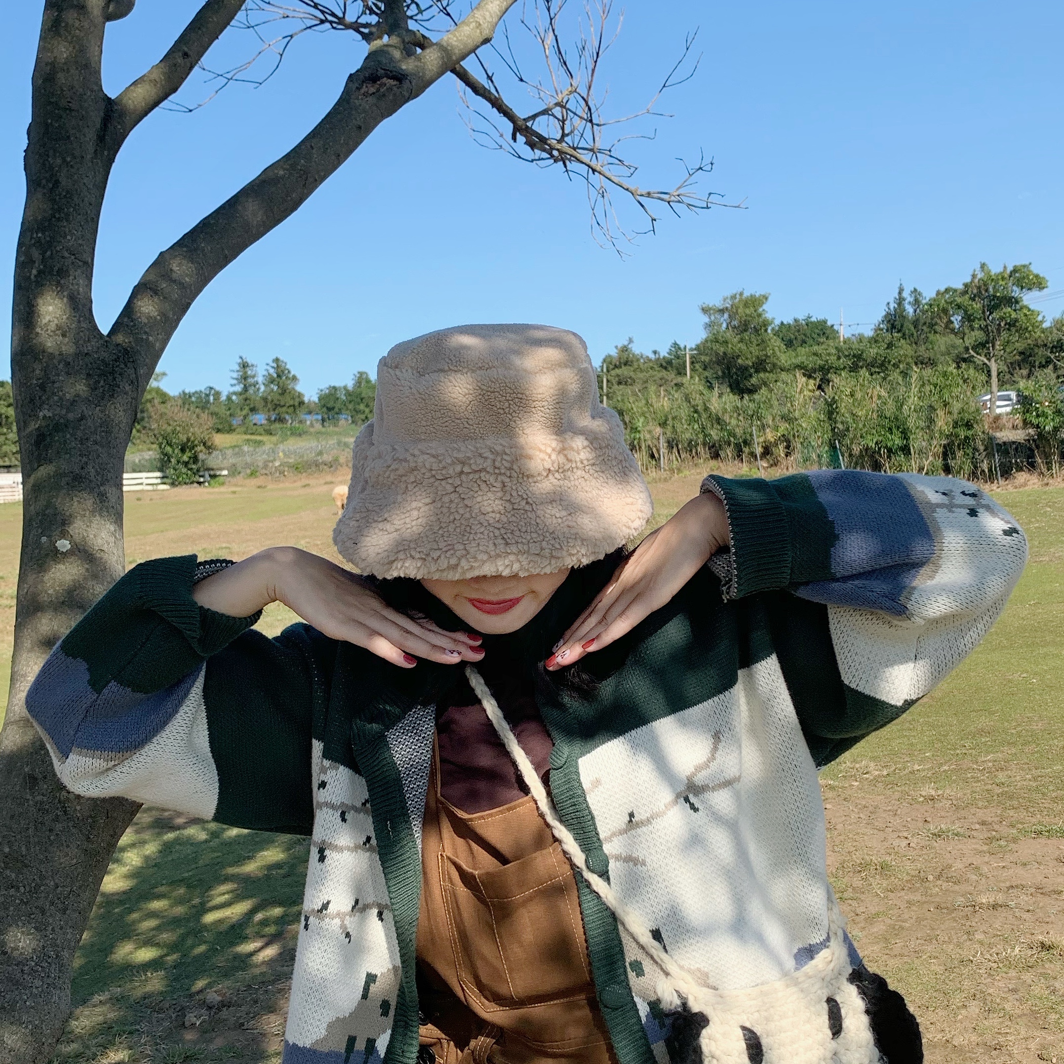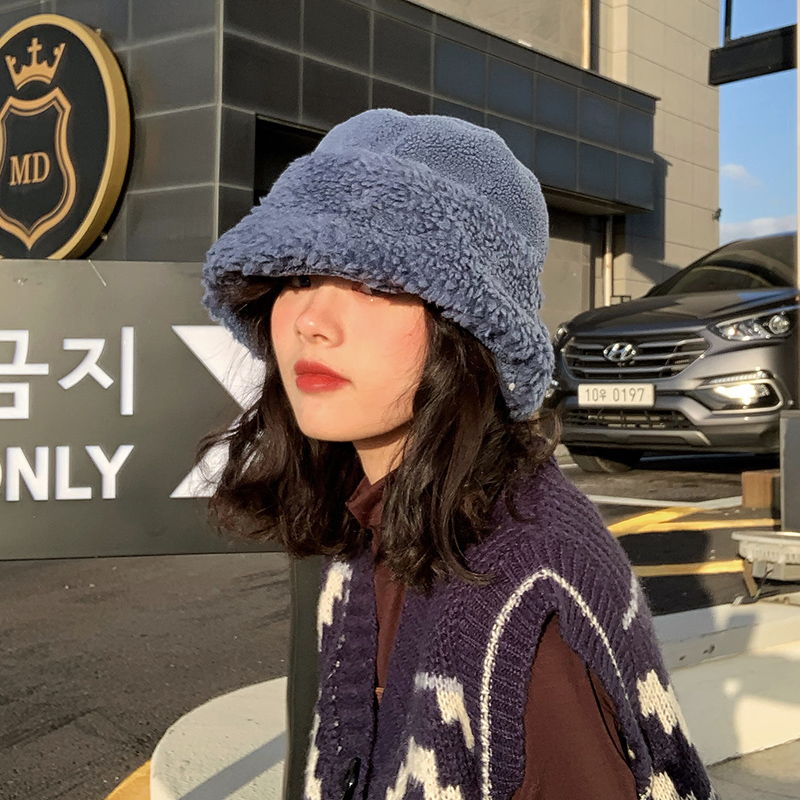 Winter day warm lamb wool fisherman hat women's day department 100 hitch thickened warm and cute plush hat retro basin hat