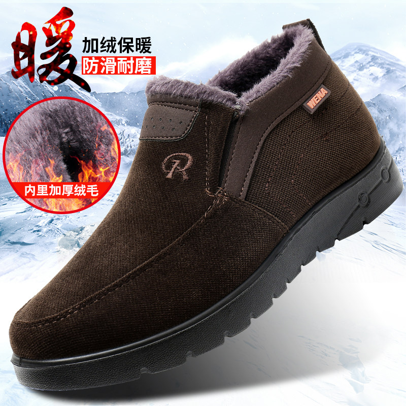 Winter old Beijing cloth shoes men's cotton shoes high tube plus velvet warm old men's shoes non-slip soft bottom middle-aged and elderly dad shoes