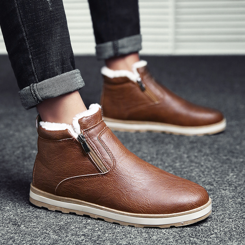 Winter Snowy Boots Men Cotton Shoes Short Silo Plus Suede Men Shoes Waterproof Inglém Short Boots A Foot Pedal Thickened Warm Men's Boots