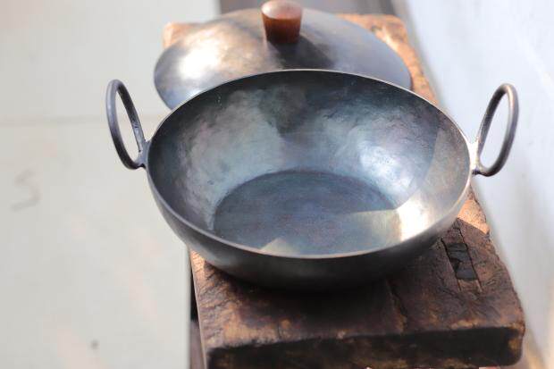 Hand Forged iron pot Binaural iron wok Flat iron pot Small frying pan Small wok Handmade pot 26cm Binaural iron wok