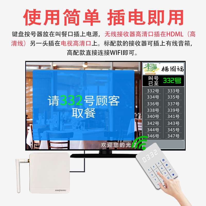TV wireless called number instrumental voice number queuing and equipation Number system catering hotel Milk Tea Shop is called Machine Row Number Ordering Food Theorizer Commercial Take-Out Dining Room Dining Room Dining Room Hemp Hot and Spicy Hot-Called Instrumental