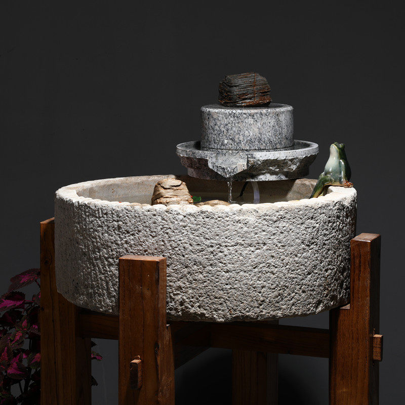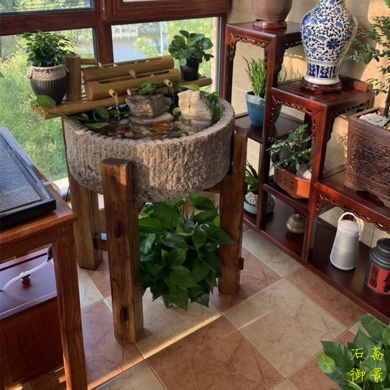 Yuanbao basin 50 cm (wooden frame + stone grinding flowing water)