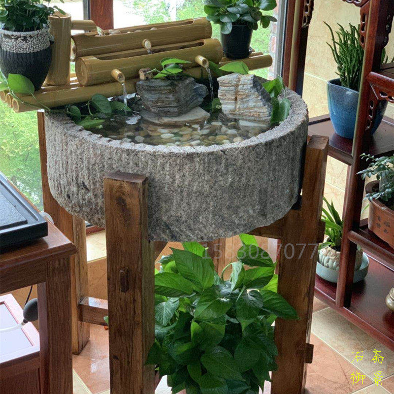 Old stone trough stone grinding water stone pot fish farming stone fish tank culture flower stone pot bamboo flowing water vessel indoor crystal viewing pool