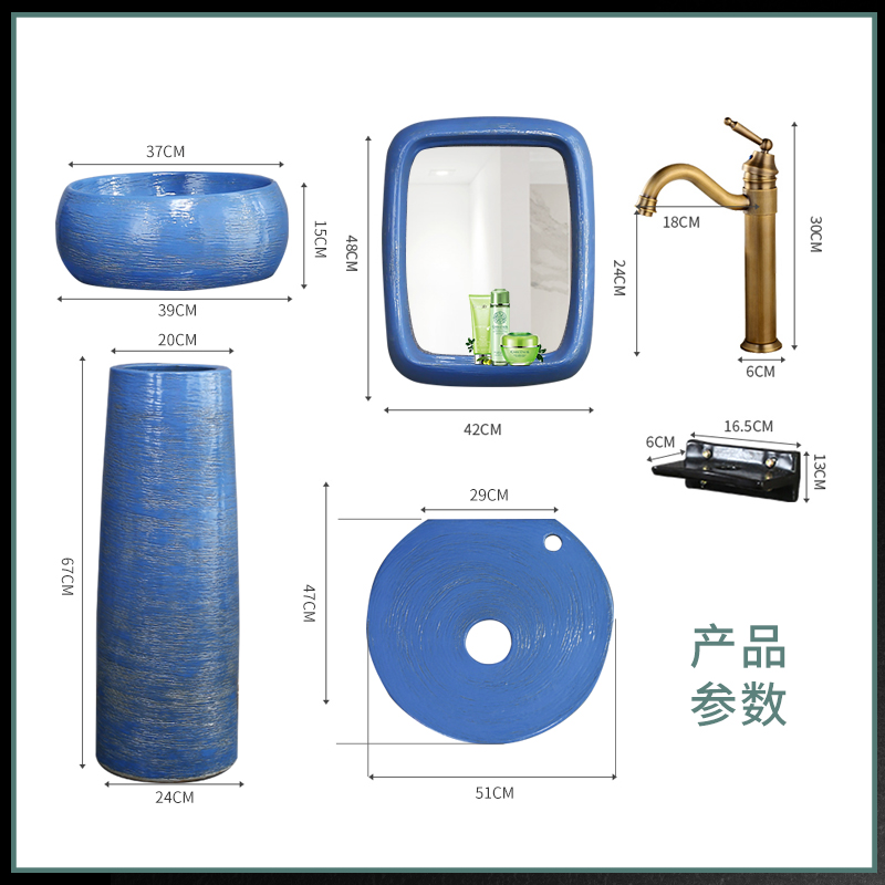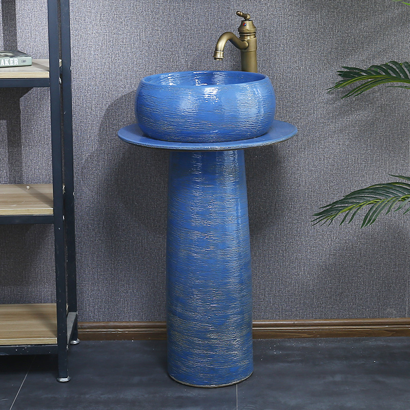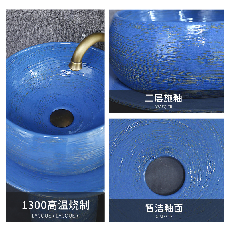 Nordic Wind Ceramic Makeup Room Wash Basin Ground Style Washbasin Integrated Column Basin Washbasin Balcony Wash