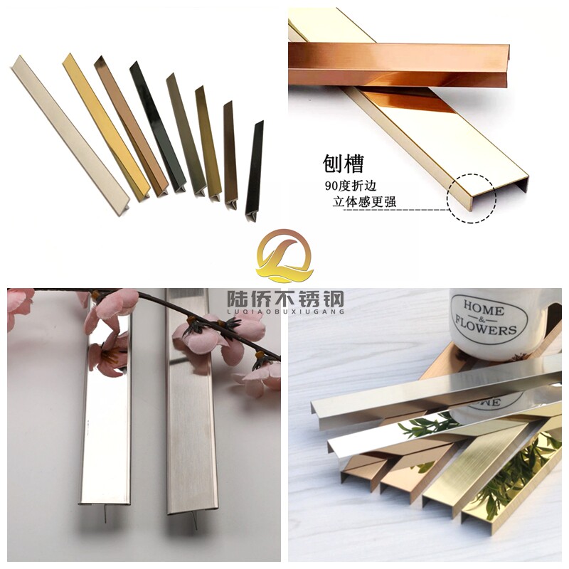 Stainless steel decorative T-shaped strips Rose gold stainless steel L-shaped strips Titanium stainless steel U-shaped grooves Color edging strips