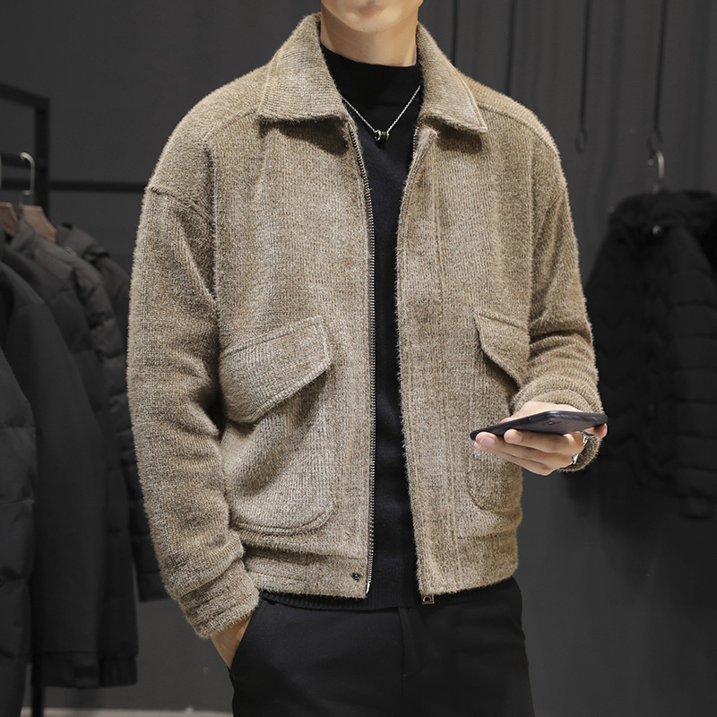 2021 autumn and winter new short jacket jacket male trend Korean version water mink suede thickened men's spring and autumn