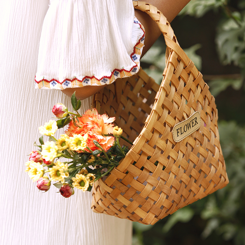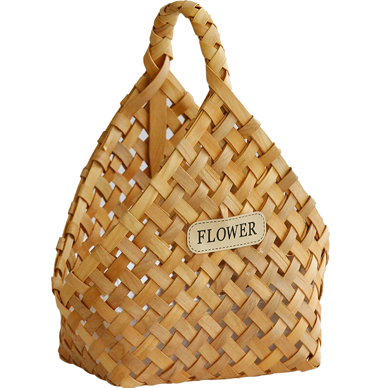 Handmade wood sheet Woven Handbag with wind retro hand basket Gift Basket Gift Basket of Flowers Basket Fields Garden Wind Containing Basket