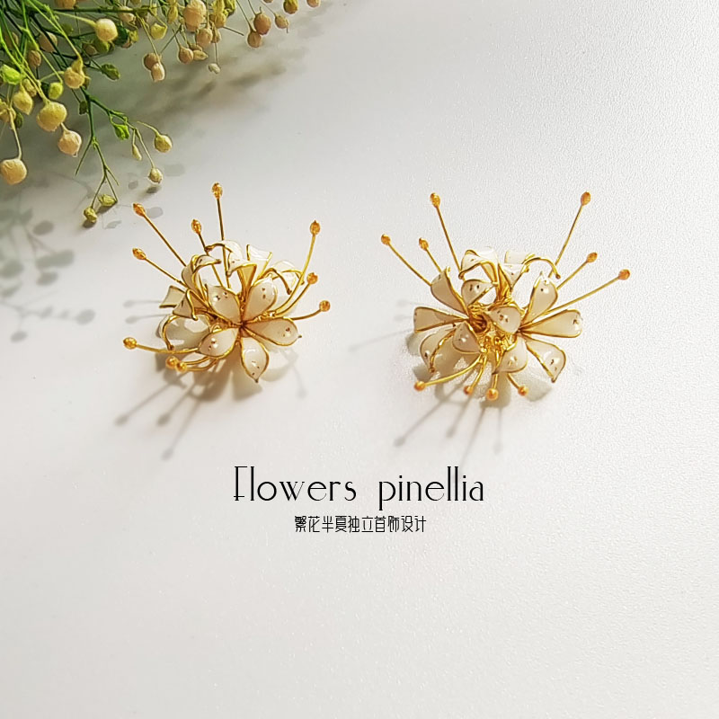 Mandala Hua white other side flower long earrings 925 sterling silver ear pin ear clips antique personalized gift