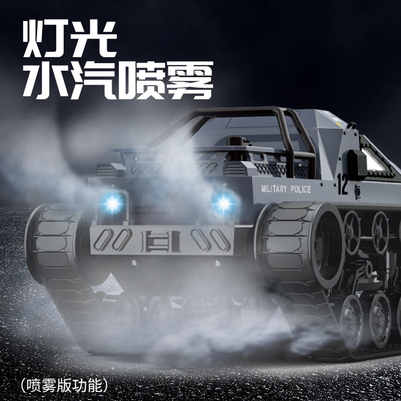 The Jumbo Tank Fighting Vehicle (black + tail spray) can open the hatch + 360 degree rotation + high-speed drift