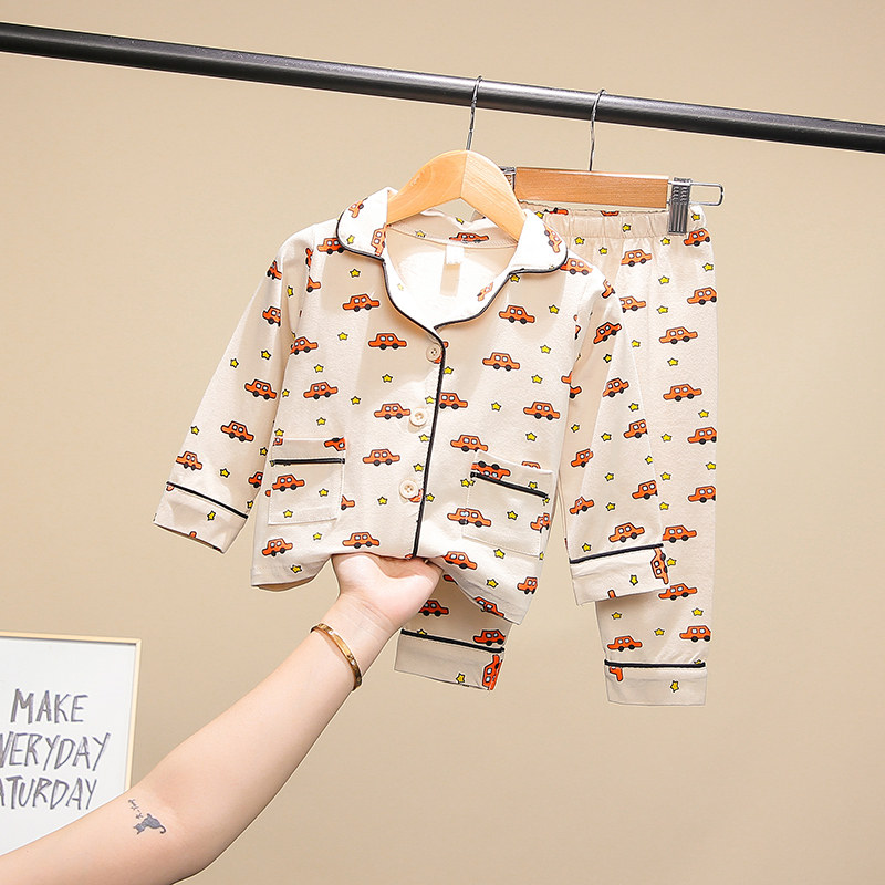 Children's pajamas set cotton long-sleeved spring and autumn clothes boys baby cartoon home clothes girls air conditioning clothes two-piece suit