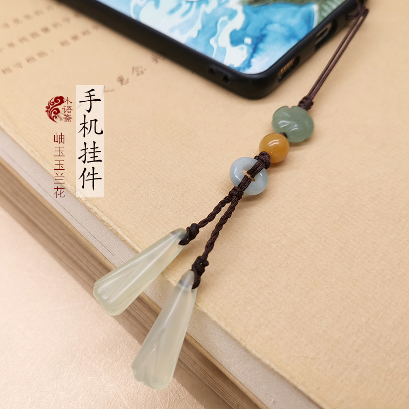 Creative jade mobile phone chain pendant magnolia flower ancient style U disk pendant keychain cheongsam press placket bag hanging fan pendant
