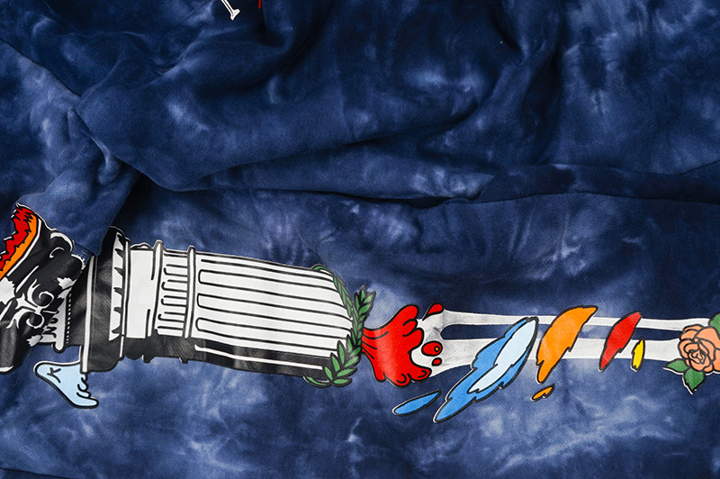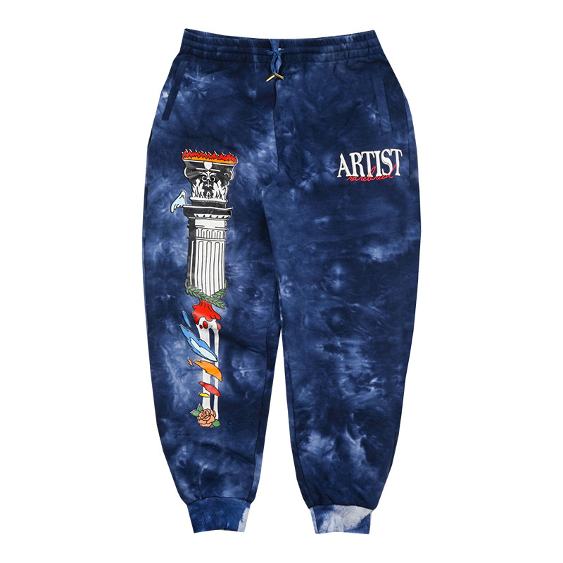GRAF original brand artist tie-dye crack foam three-dimensional plaster autumn and winter terry blue trousers