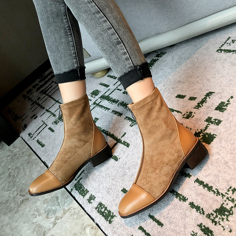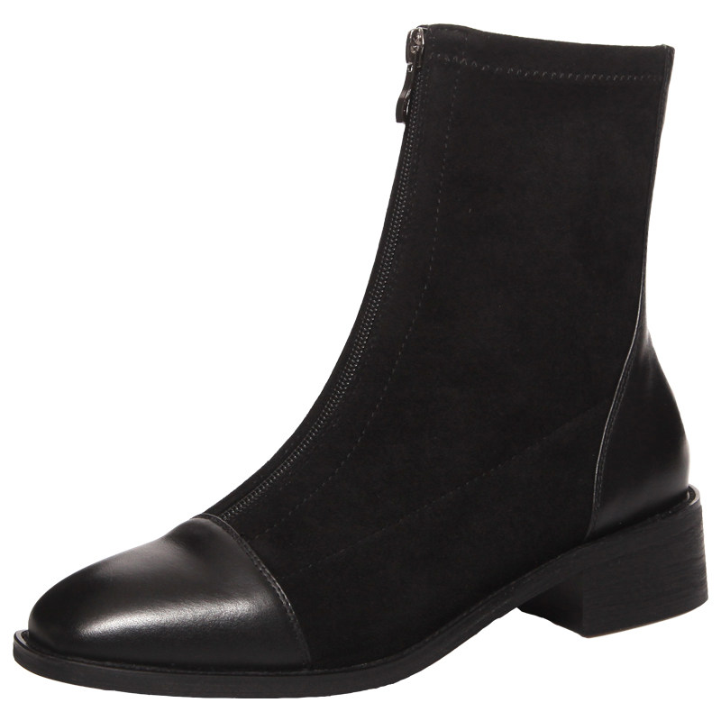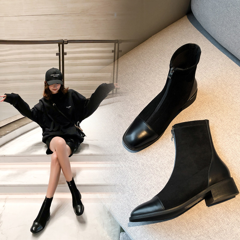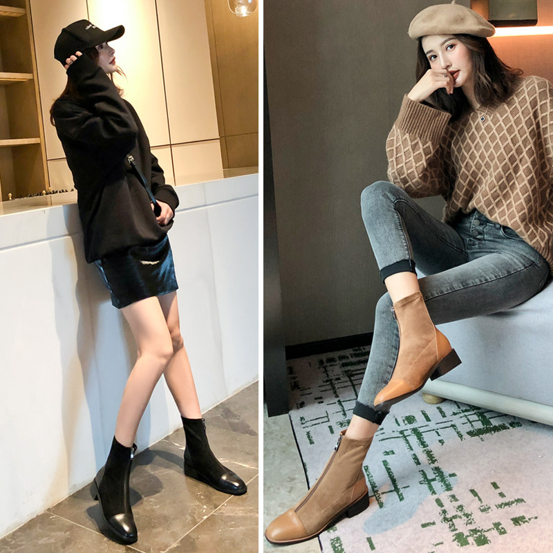 Shoes women's autumn and winter thick heel all-match Martin boots showing feet small short boots women's 2019 new net red front zipper thin boots