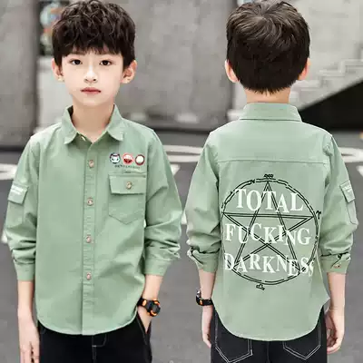 Boys spring and autumn cotton shirt children's western style top 2021 new middle and large boys long-sleeved shirt Korean version of the tide