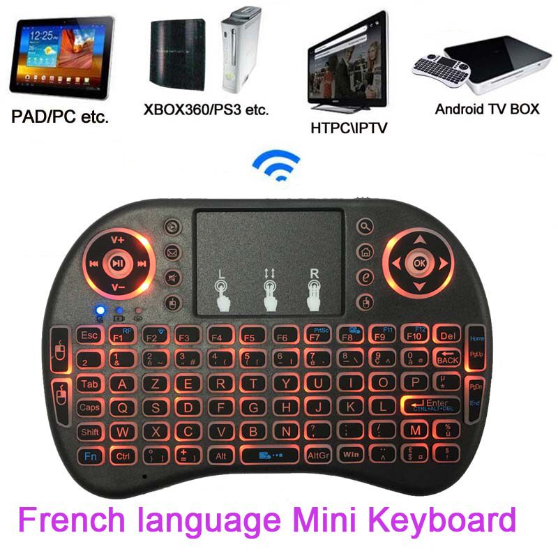 French 2 4G mini wireless Backlight keyboard for tv box HDTV