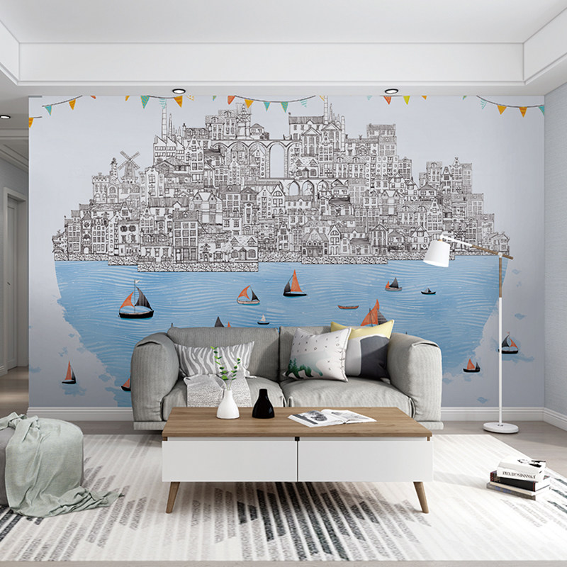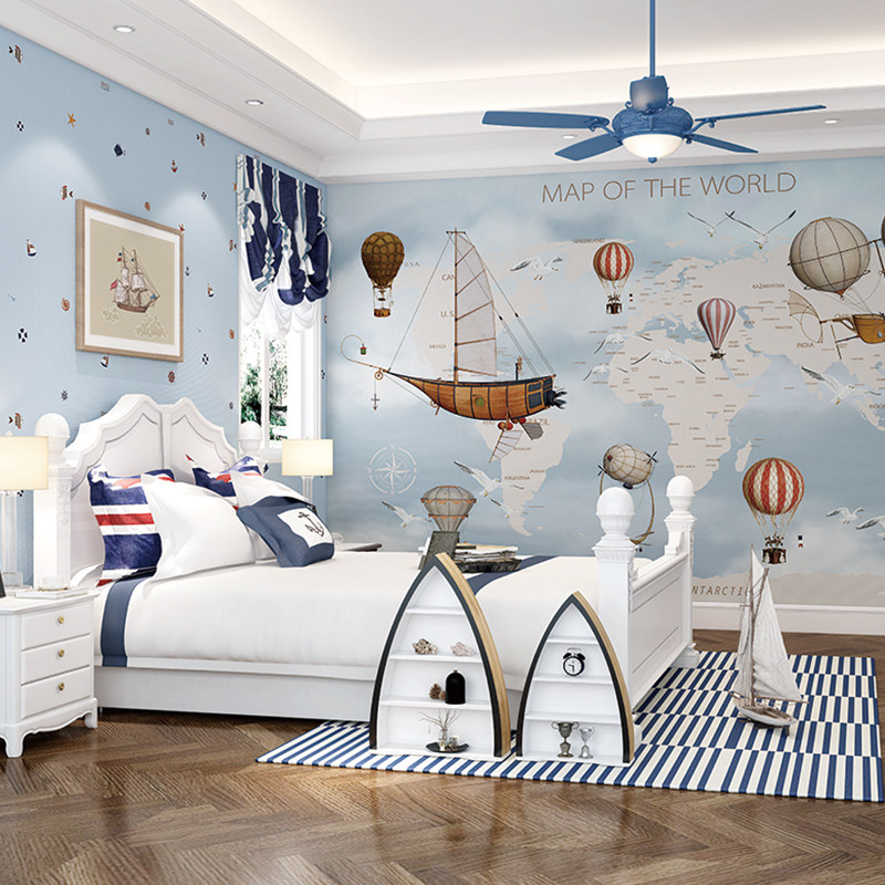 Children's room mural Male and female children's room bedroom cartoon world map custom mural modern jane ocean background wall cloth
