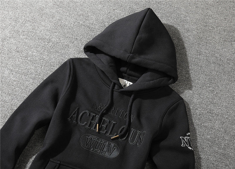 Autumn and winter new fleece kangaroo pocket men's slim plus velvet hooded sweatshirt American casual jacket comfortable men's tide