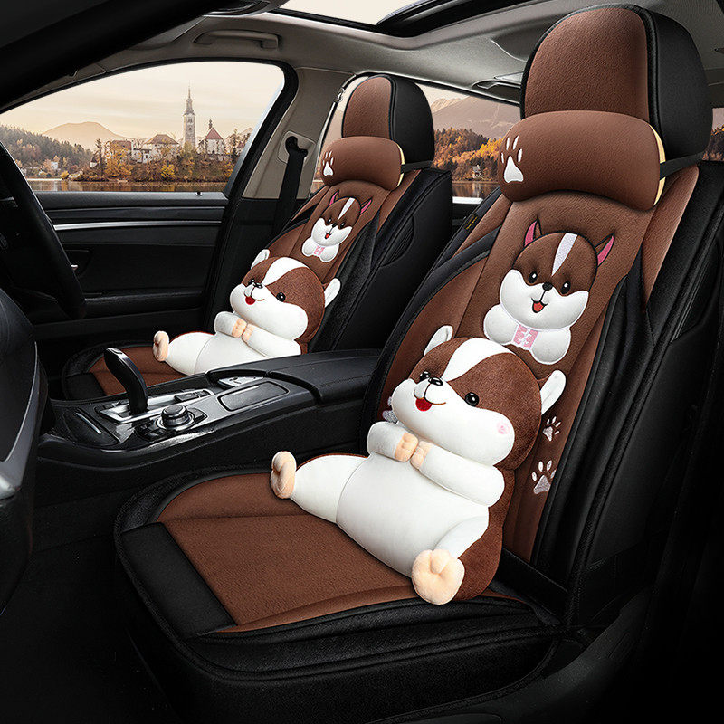 Winter car cushion new net red goddess warm and cute cartoon special seat cover winter plush full bag seat cushion