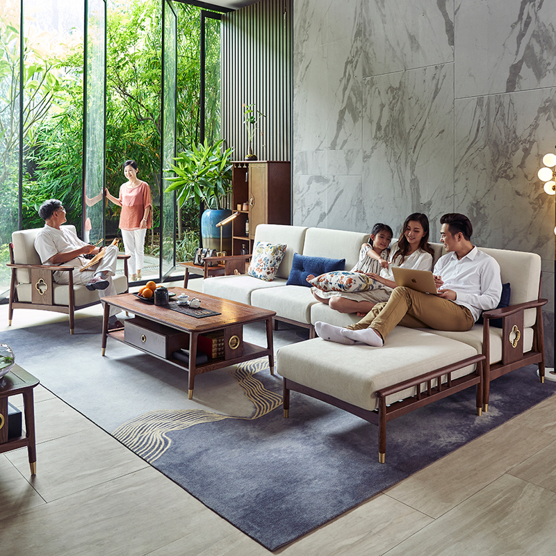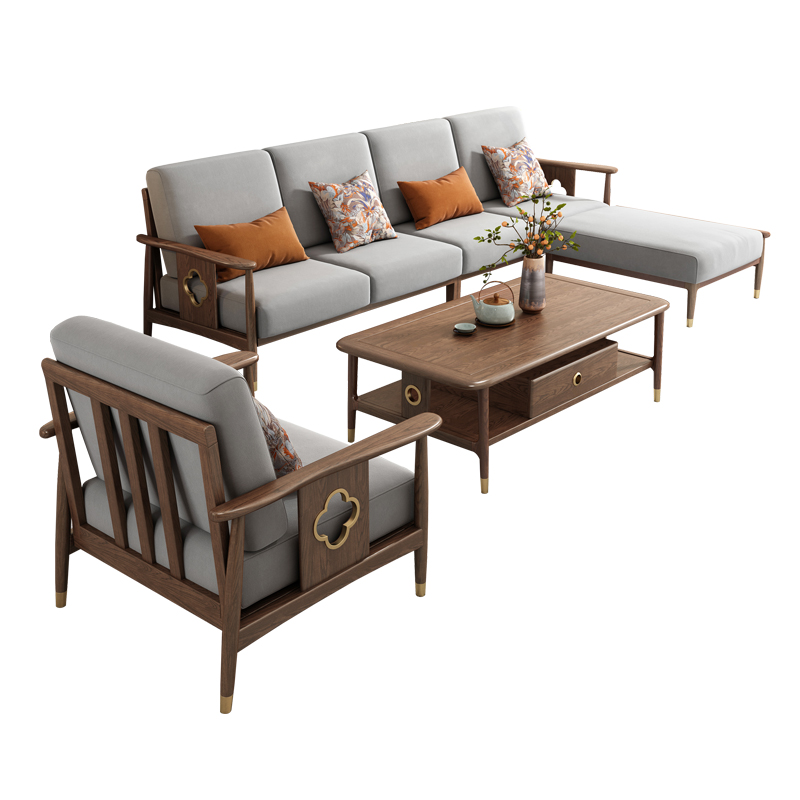 New Chinese all-solid wood sofa white wax wood living room size household type can be removed from Nordic cloth sofa copper wood furniture