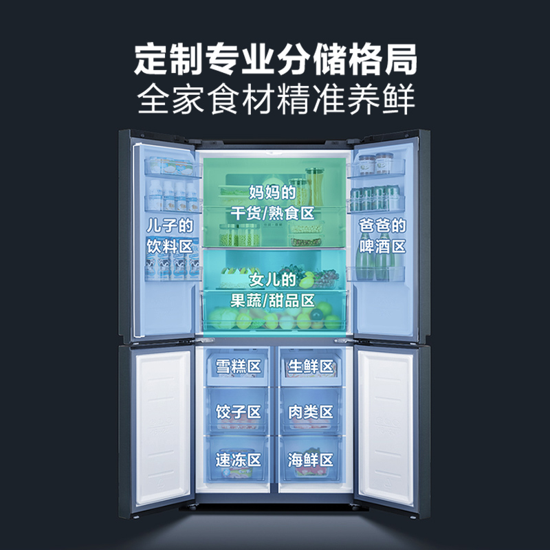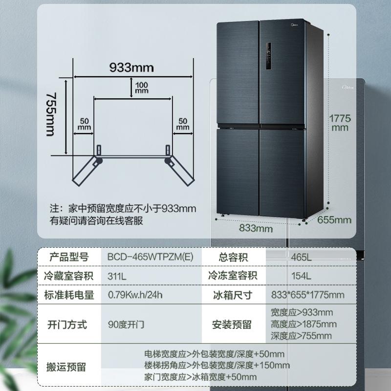 Midea cross double door four door variable frequency energy efficiency energy saving intelligent frost-free household refrigerator 465 liters