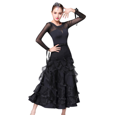 Dampao woman's new big swing long sleeve dress Moden dance suit to suit the social dance national standard dance dress