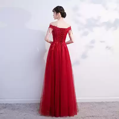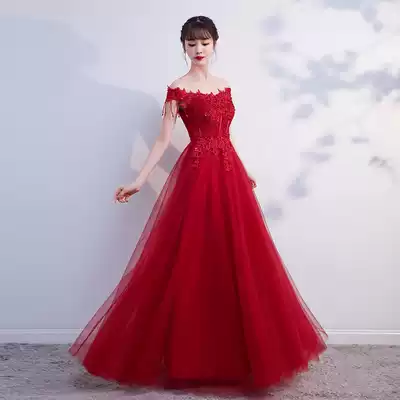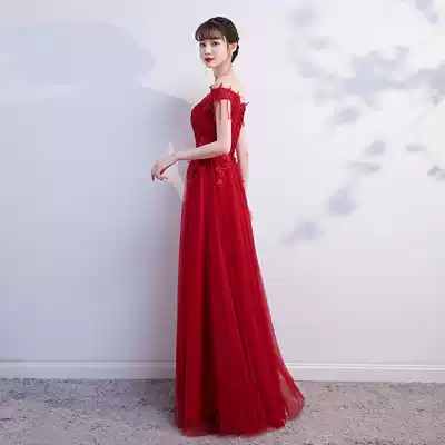 Toast Bride 2020 new winter long version of temperament thin word shoulder red wedding back door dress female