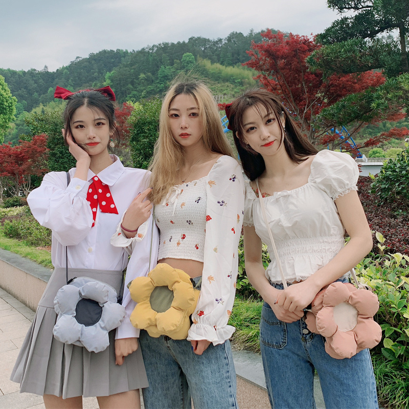 Tricolour patch Flowers Bag for women 2021 autumn and winter small crowdday Department cute little bag student 100 hitch satchel bag