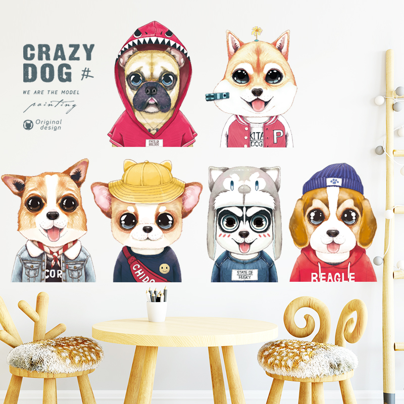 Wall Stickon Cartoon Animal Pet Dog Dork Cute Creative Cozy Children's Room Kindergarten Classroom Placement Self-Stick