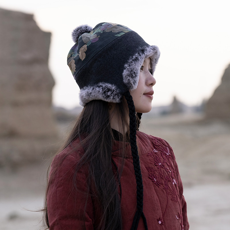 (Zhen Zhen) Mo Shang Hua Kai original silk fragrant cloud yarn with Rex rabbit fur snow cap fashion hat female