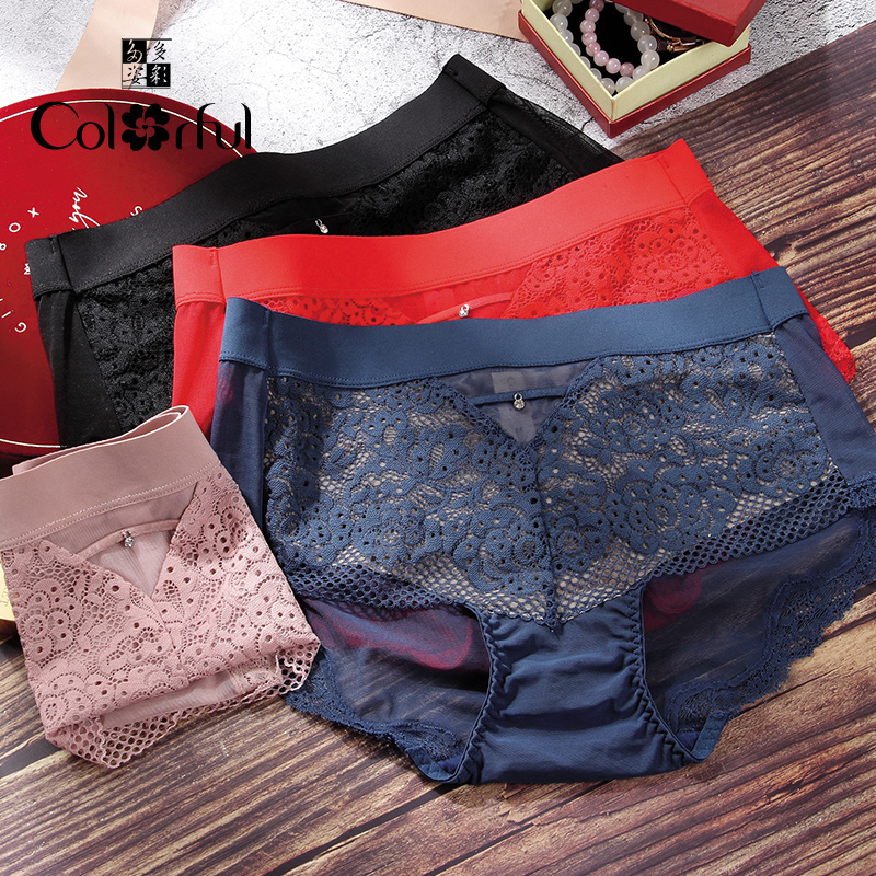 Colorful multi-coloured underpants mid-waist lifting hip Sexy Sexy Lace Four-corner Pants Women Comfort Pants C8850F