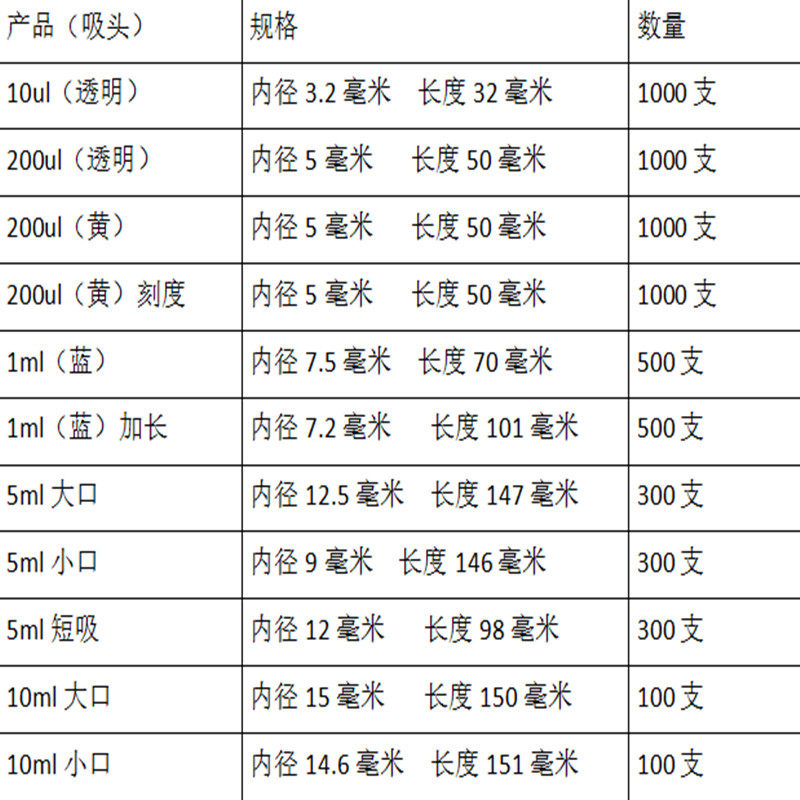 10ul10ul length 100ul for finishing (4*49mm)200ul200ul scale 250ul for finishing(6*50mm)300ul500