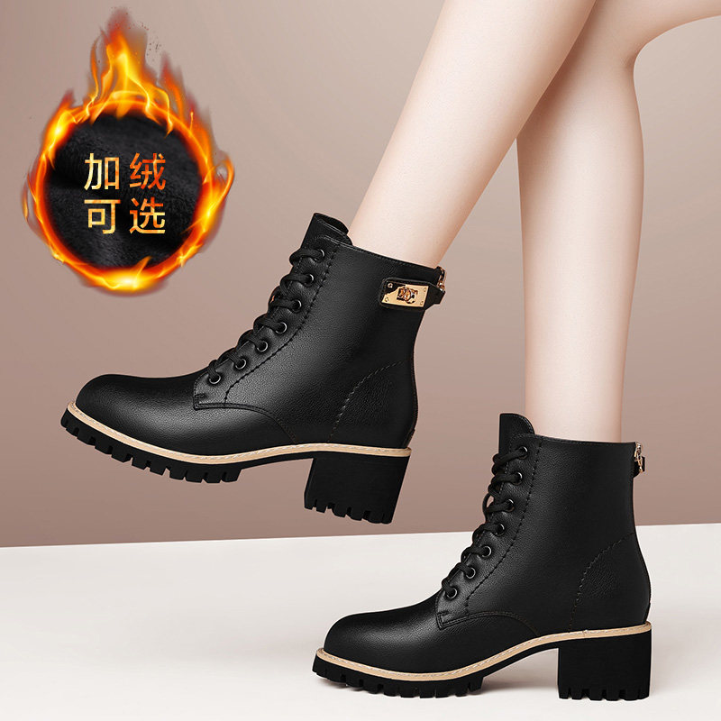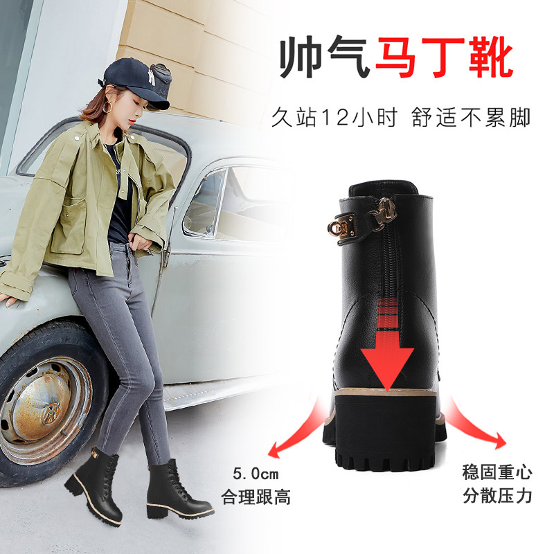 Martin boots British style thin short boots 2021 new women's shoes all-match plus velvet middle heel thick heel autumn and winter boots