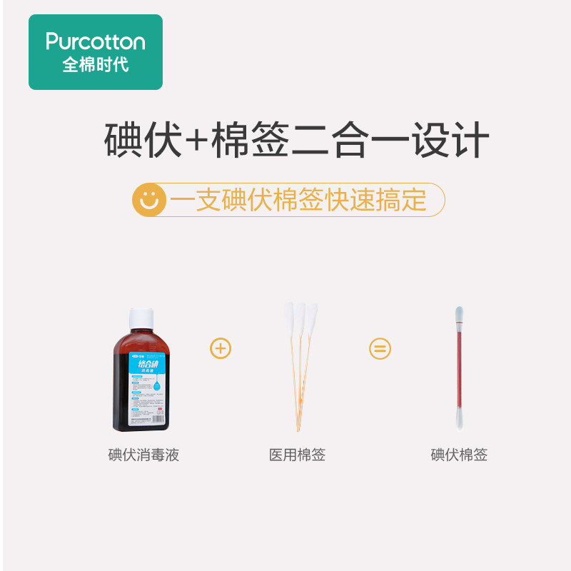 Cotton era disposable iodine swab independently contains wound newborn baby navel disinfection portable double-headed cotton swab