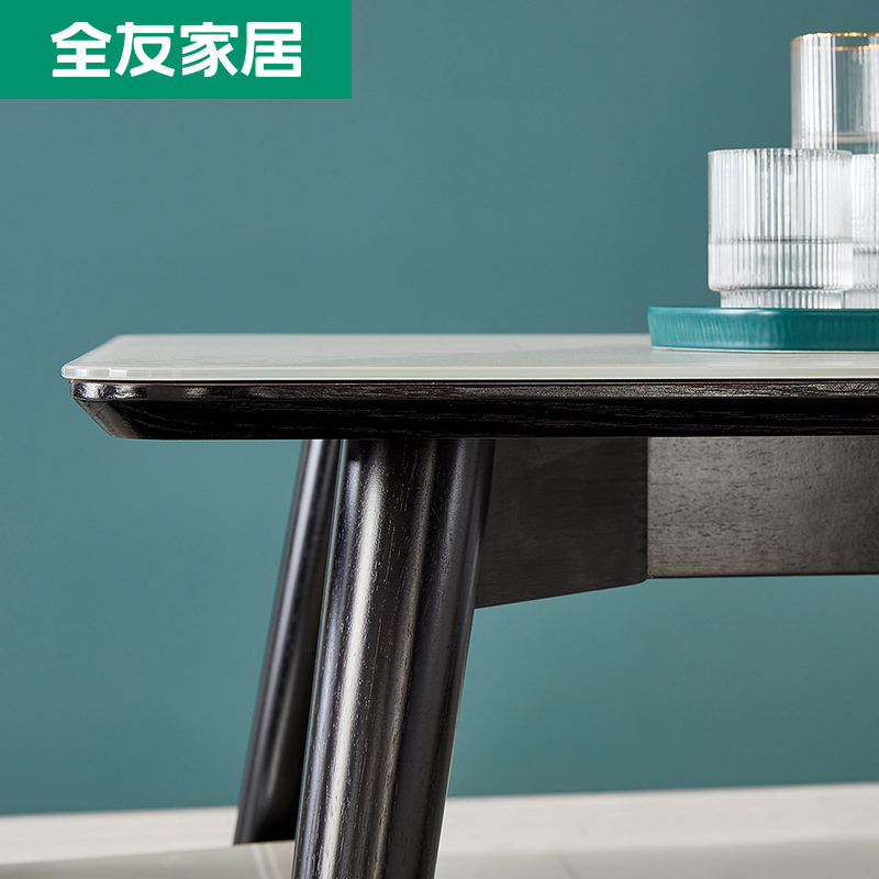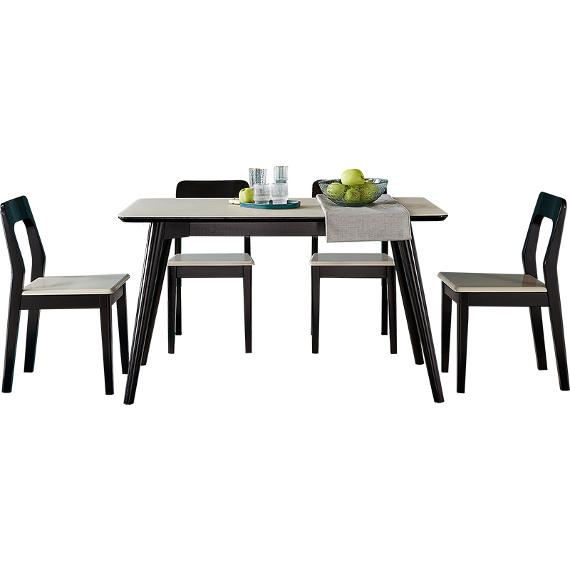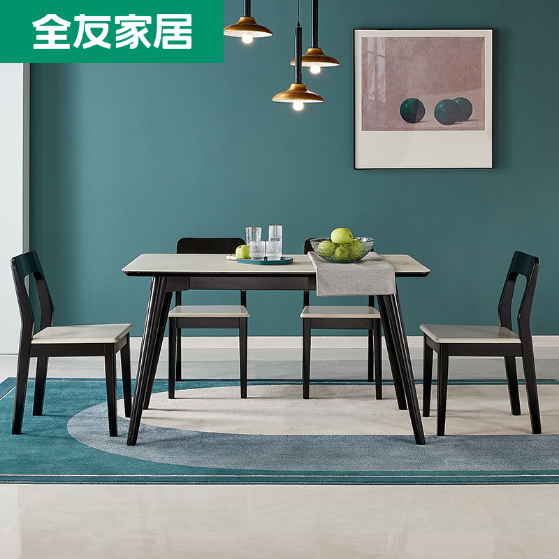 (Snapped up) full friend furniture modern minimalist dining table and chairs rubber wood frame rack tempered glass table surface 120770