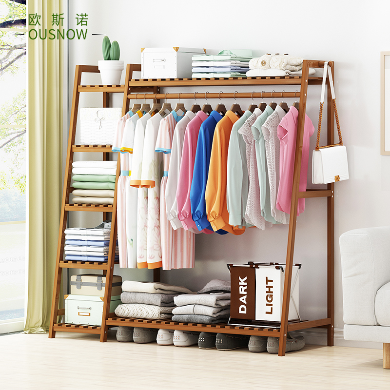 Cloakhat rack Easy bedroom hanging clothes hanger bag solid wood floor shelving minimalist modern home clothes rack