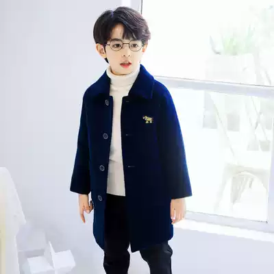 2021 winter clothes New boys' woolen coat plus velvet Korean children's woolen coat medium and long version of foreign school children's clothing tide