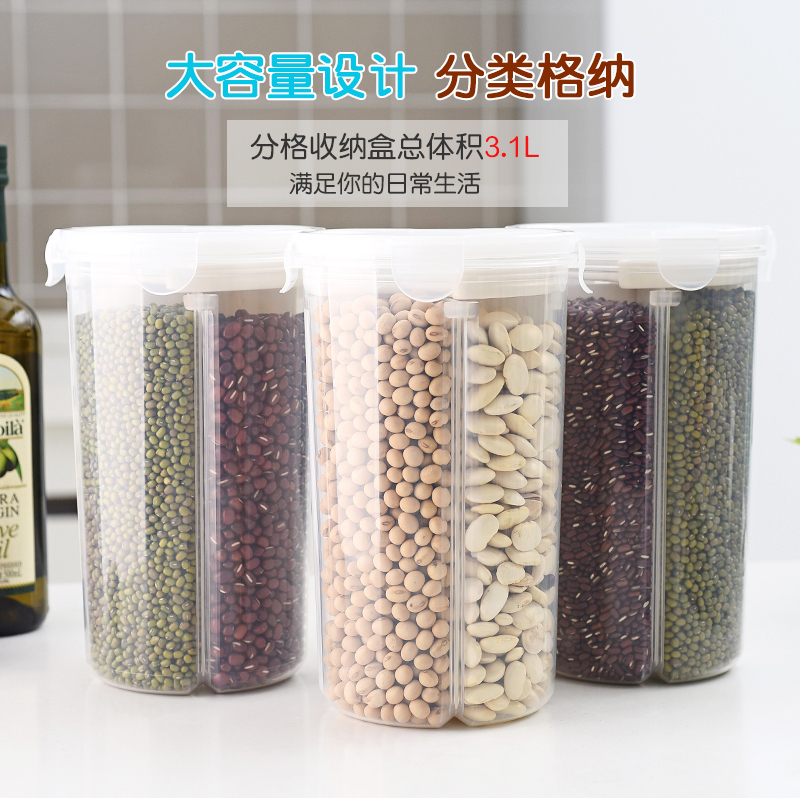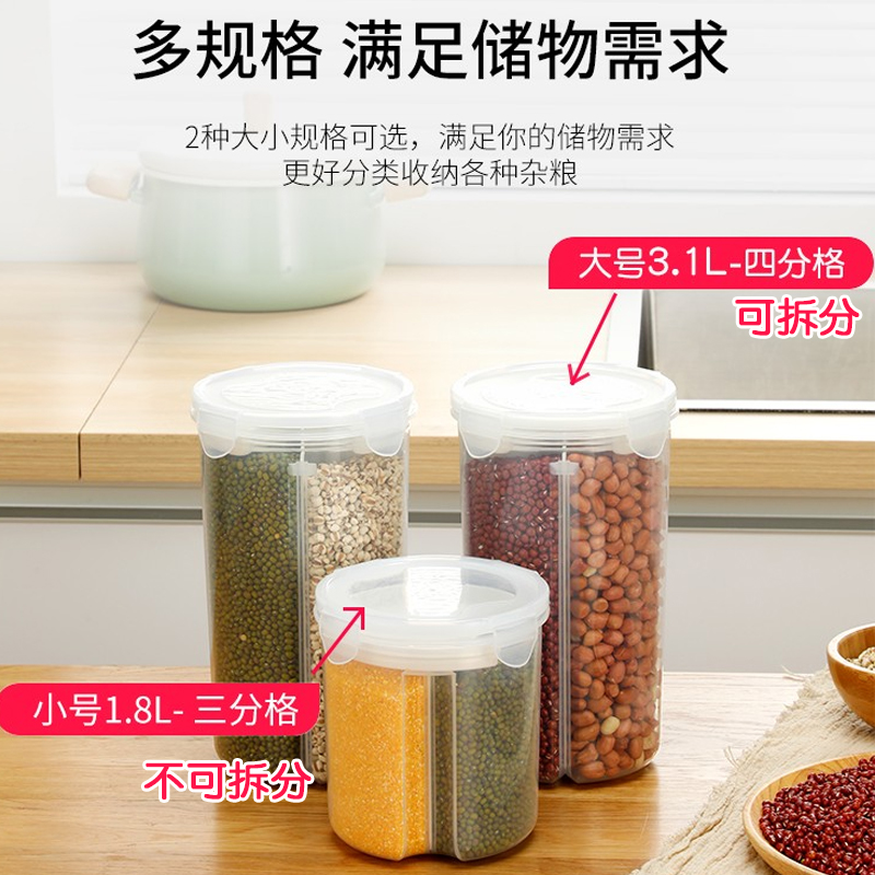 Grain tank grid storage box Household classification Transparent sealed tank Kitchen food storage tank Bean storage tank