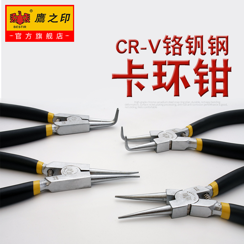 Eagle's printed snap spring pliers 7 inch inner card external card Yellow pliers C type clasp clamp inner straight outer bend inner bend spring fitter card ring pliers