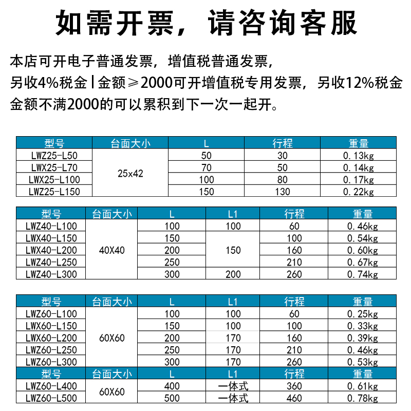 LWZ25-50 (stroke 25mm) LWZ25-70 (stroke 50mm) LWZ25-100 (stroke 75mm) LWZ25-150 (line