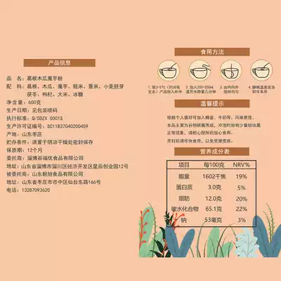 Pueraria lobata papaya konjac brown rice barley wheat germ Poria Cocos wolfberry rice rock sugar