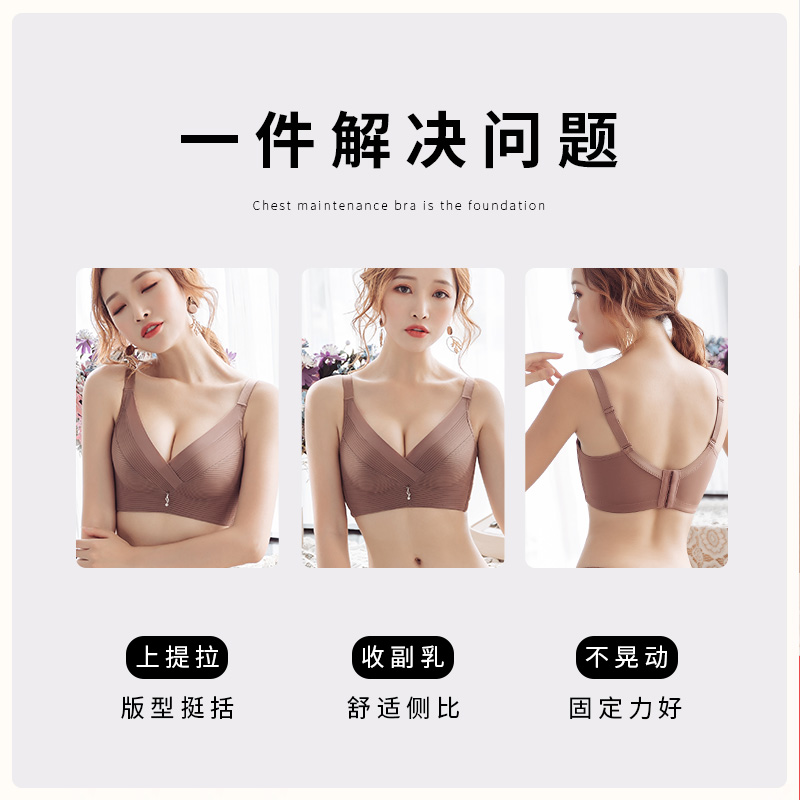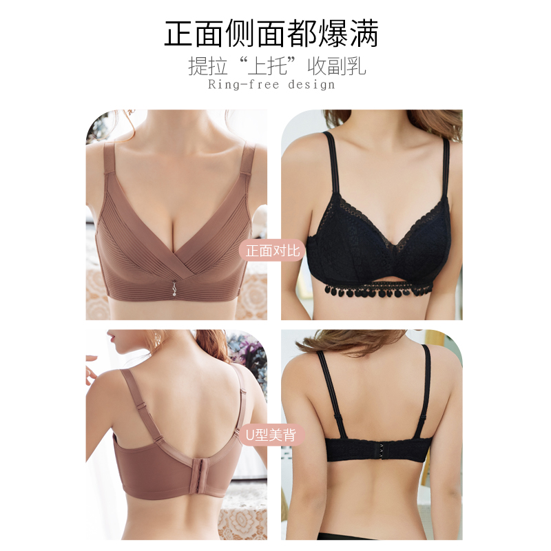 Underwear women without steel ring, small chest gathering adjustment type, non-trace beauty back thin set sex puzzled bra summer